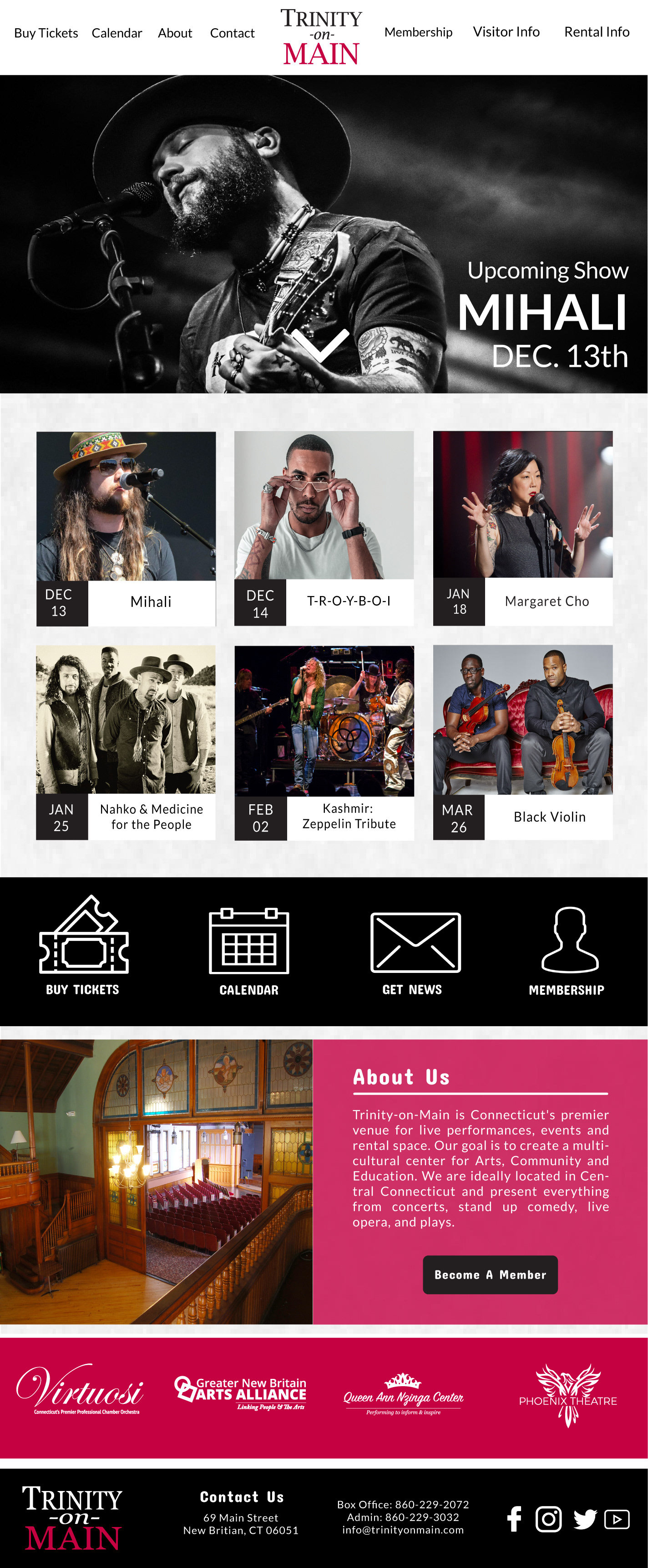 Trinity On Main is a concept project focused on redesigning the concert and event website for the music venue. In this redesign, a new homepage and various internal pages were designed to give a better user experience.